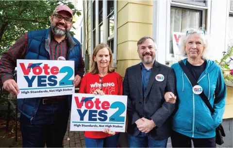 Campaign volunteers, including working and retired educators, their family members, parents, elected officials and supporters of public education, have fanned out throughout the state over the past several months, urging a YES vote on Question 2.
