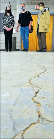 Massachusetts State College Association members, however, are eager to bring visitors to the building, where they point out severely cracked walls and floors, splotches of black tar that seep down from a courtyard after a heavy rain, and water-damaged ceilings that are flaking off dusty debris.