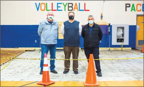 Only a small section of the wooden floor is usable because a persistent water leak has destroyed the floor. The boards are in disarray, and a large section is cordoned off as educators continue to wait for repairs.