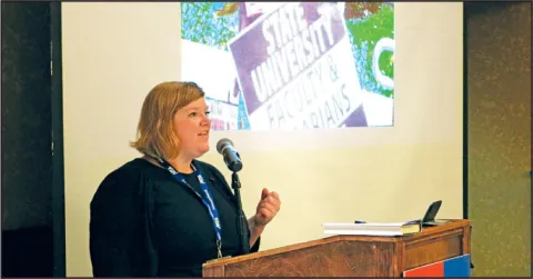 MTA higher ed members were joined by allies from other unions, student groups and some preK-12 locals at the conference, which was held on Jan. 10 at the Sheraton Springfield Monarch Place Hotel. The fight to win passage of the Cherish Act — as well as secure immediate increases in public higher education funding — formed the framework of the event.