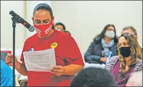 Also opposing the plan was Michelle Willis, the treasurer of the New Bedford Federation of Paraprofessionals, which is affiliated with the American Federation of Teachers Massachusetts. Photo by Jonathan Ng